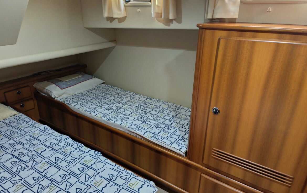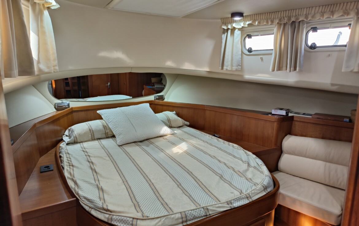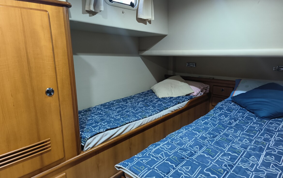 This model is highly regarded for its quality craftsmanship, spacious interior, and reliable Caterpillar engines, all housed within an immaculate and generously sized engine room. With impressive efficiency, she offers a cruising range exceeding 1,000 nautical miles, making her ideal for comfortable island cruising or extended long-distance passages.