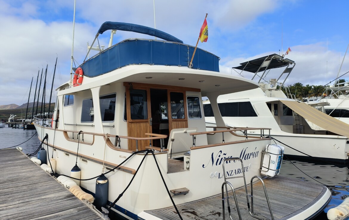 ‘Niña Maria’ is a beautifully presented Belliure 48 Motor Yacht, launched in 2001 and owned from new by her first and only private owner. Located in Lanzarote, she is a solidly built Category A semi-displacement cruiser, renowned for her exceptional seakeeping and timeless trawler-style profile.